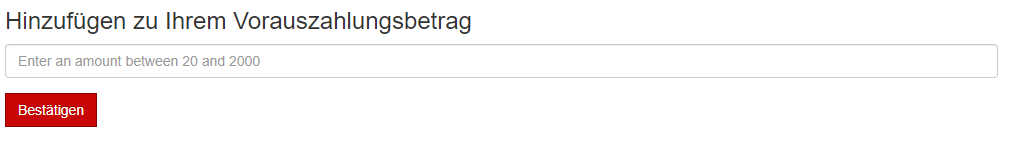 - Der Betrag, den Sie hinzufügen möchten, muss zwischen 20 Euro und 2000 Euro liegen.