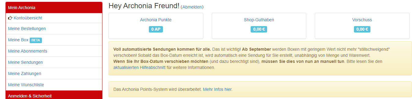 - Alle Ihre Archonia-Punkte verfallen 3 Monate nach dem Absenden Ihrer letzten Bestellung.