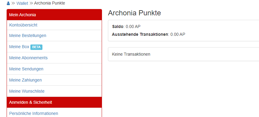 Sie können Ihre Archonia-Punkte in Ihrem Archonia-Konto in Ihrer Kontoübersicht verfolgen.