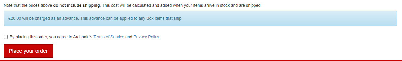 How much the required prepayment is, depends on the total amount of your Box items. It's pretty straightforward though.